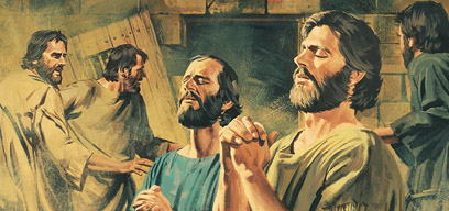 “With their backs sore and bleeding, their bodies chilled by the cold and dampness, their legs cramped and aching, hungry and sleepless and surrounded by the blackness of midnight, Paul and Silas who knew they were suffering for the sake of the true Gospel, could rejoice and praise the Lord. This they did at midnight, by praying and singing ‘praises unto God.’ Their voices rang out through the prison cells; and prisoners, hard hearted and sinful, listened in surprise to the first Christian hymn they had ever heard. The power of the Lord manifested itself not only in the hearts of His true servants, but in the entire prison and the town as well; for ‘suddenly there was a great earthquake, so that the foundations of the prison were shaken.’ All the bolts and bars at the doors fell from their sockets and the doors of the prison flew open, and ‘every one’s bands were loosed,’ but not a prisoner tried to escape.” (David O McKay, Ancient Apostles [Salt Lake City: Deseret Book Co., 1964], 187-8.)