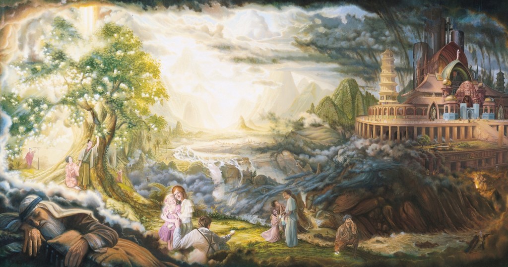 | 1 Nephi 8:9 | The large and spacious field | Contrasts with the dark and dreary waste. In response to Lehi’s prayer the scene has moved to a higher plane. |